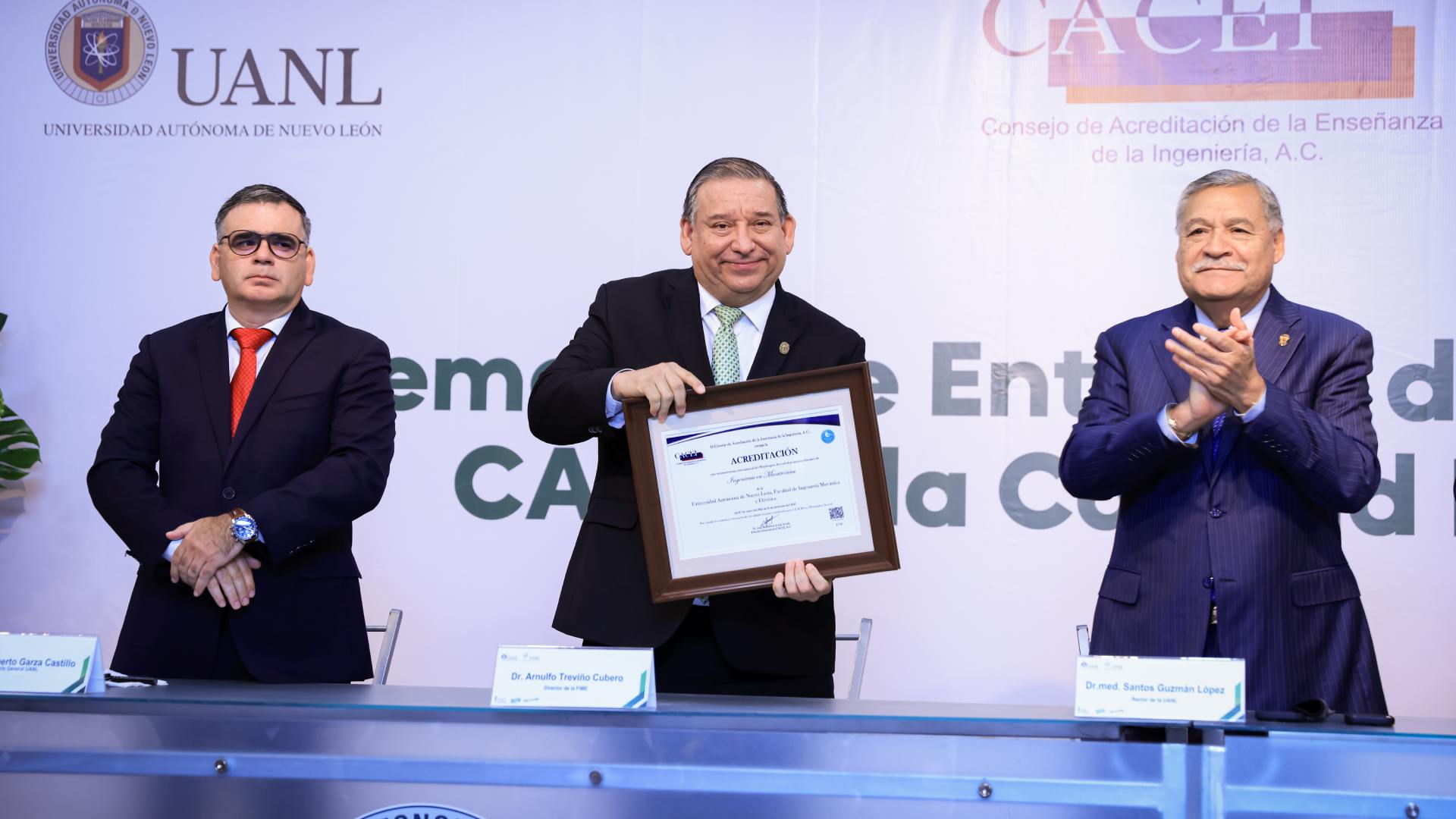 Por su calidad y pertinencia, la Facultad de Ingeniería Mecánica y Eléctrica de la UANL recibió la reacreditación del programa educativo en Ingeniería Mecatrónica, por el Consejo de Acreditación de la Enseñanza de la Ingeniería, A. C. (CACEI) el 19 de septiembre en la sala polivalente del Centro de Innovación, Investigación y Desarrollo en Ingeniería y Tecnología.
