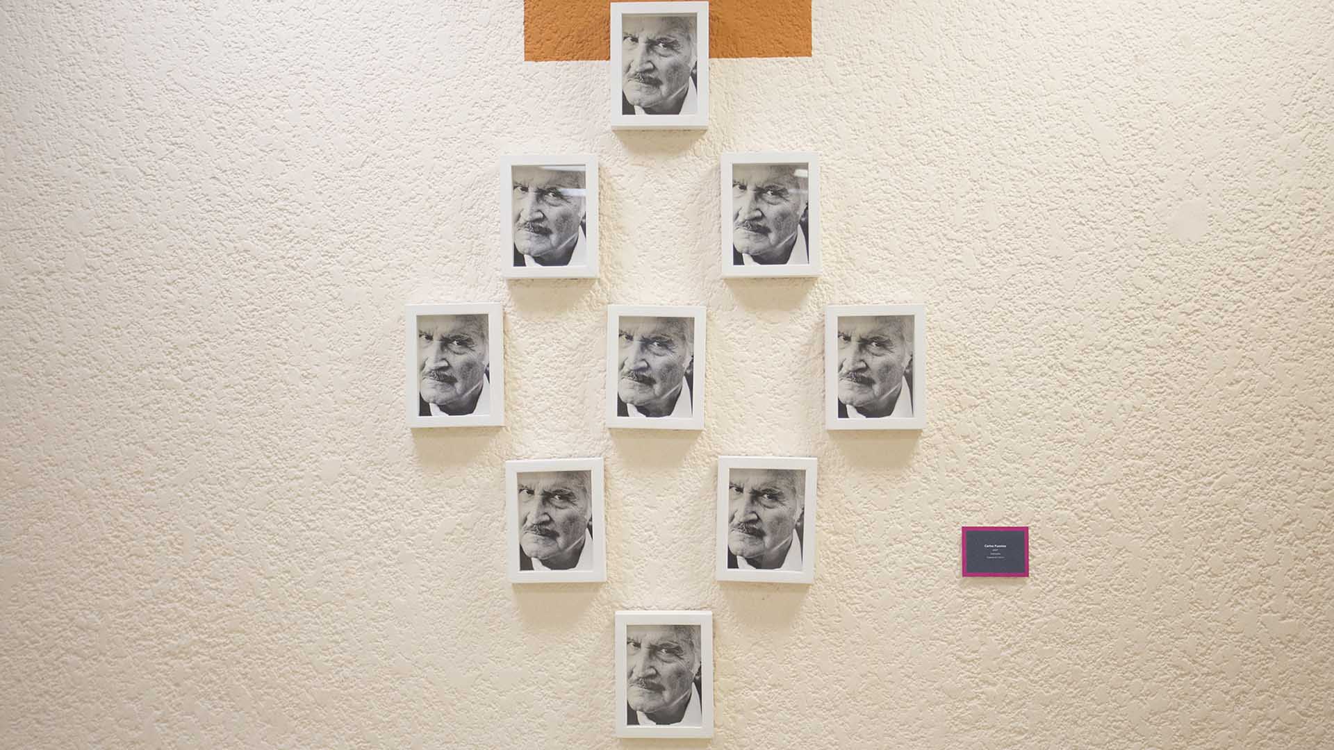 La exposición se compone de una serie de retratos que Saldívar realizó a Fuentes en 2007, cuando éste se encontraba en Madrid y ya habían sido expuestas por primera vez en el Colegio Civil Centro Cultural Universitario en 2013. El blanco y el negro de las obras destacan en el bigote y cabello del escritor mexicano.