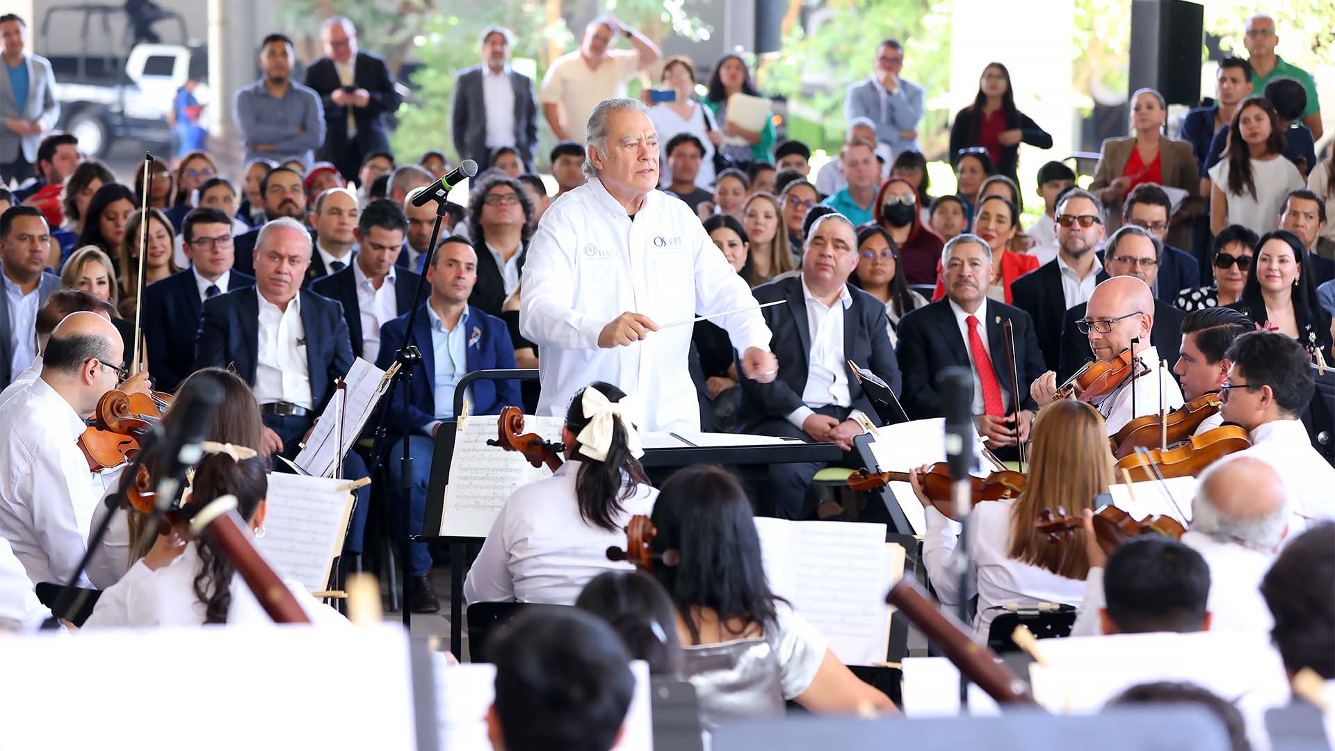 Este recinto abre sus puertas para rendir un merecido homenaje a la trayectoria de la Orquesta Sinfónica de la Universidad Autónoma de Nuevo León, que durante 65 años ha sido un símbolo de excelencia, disciplina, sensibilidad y entrega artística».