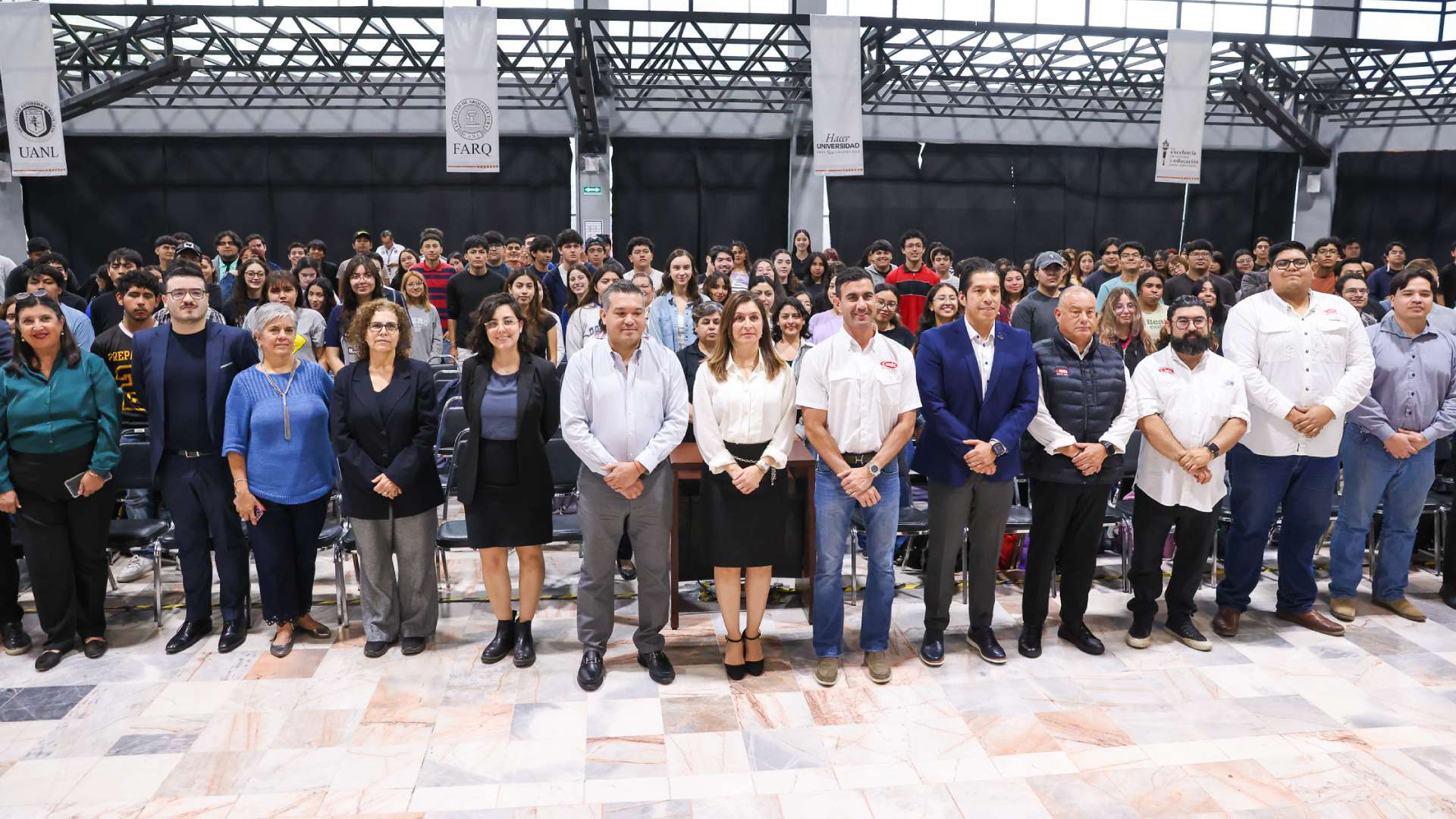El acto fue encabezado por la Directora de la FARQ, María Teresa Cedillo Salazar, y el Presidente de la CMIC Delegación Nuevo León, Rodrigo Garza Tijerina; se llevó a cabo en la Sala Polivalente el 2 de marzo, con la presencia de docentes y alumnos de la facultad.