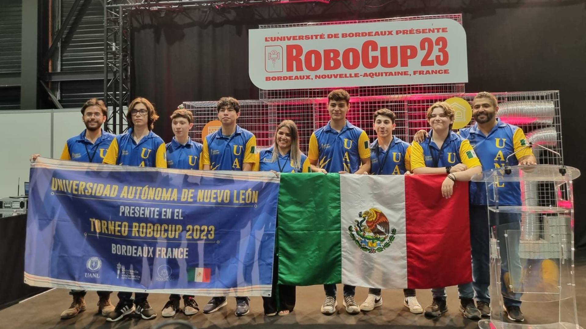 Seis estudiantes de la Universidad Autónoma de Nuevo León lograron posicionarse en el primer lugar del torneo internacional de robótica Robocup 2023, en la categoría Rescue Rapidly Manufactured Robot Challenge, que en esta edición se realizó del 4 al 10 de julio en Burdeos, Francia.