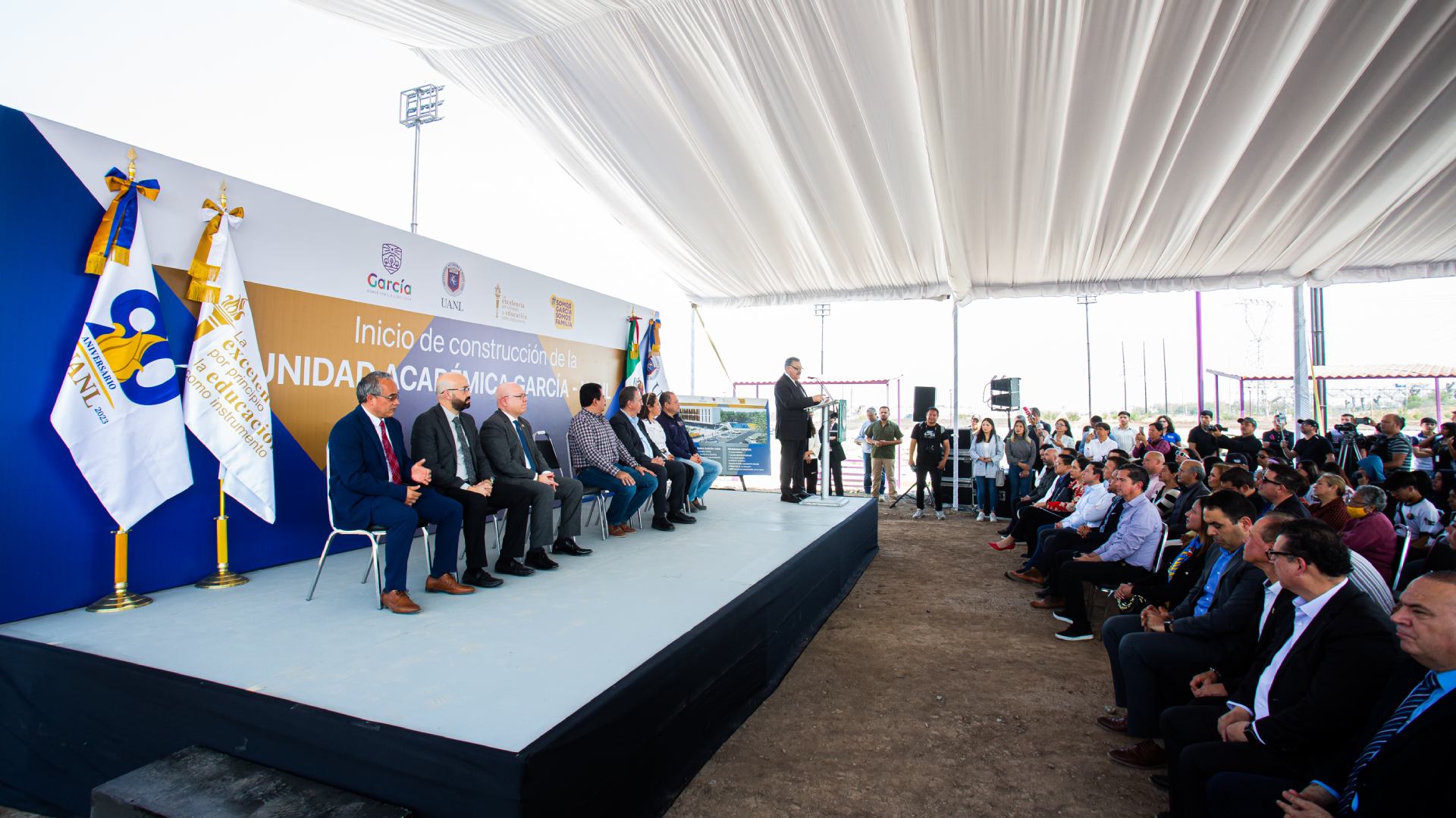 Hoy se hace historia en García, Nuevo León, con este proyecto que fortalecerá la educación en la zona poniente de la ciudad. El propósito es ampliar la cobertura académica con la misma calidad que en cualquier campus de la Máxima Casa de Estudios del Estado”.