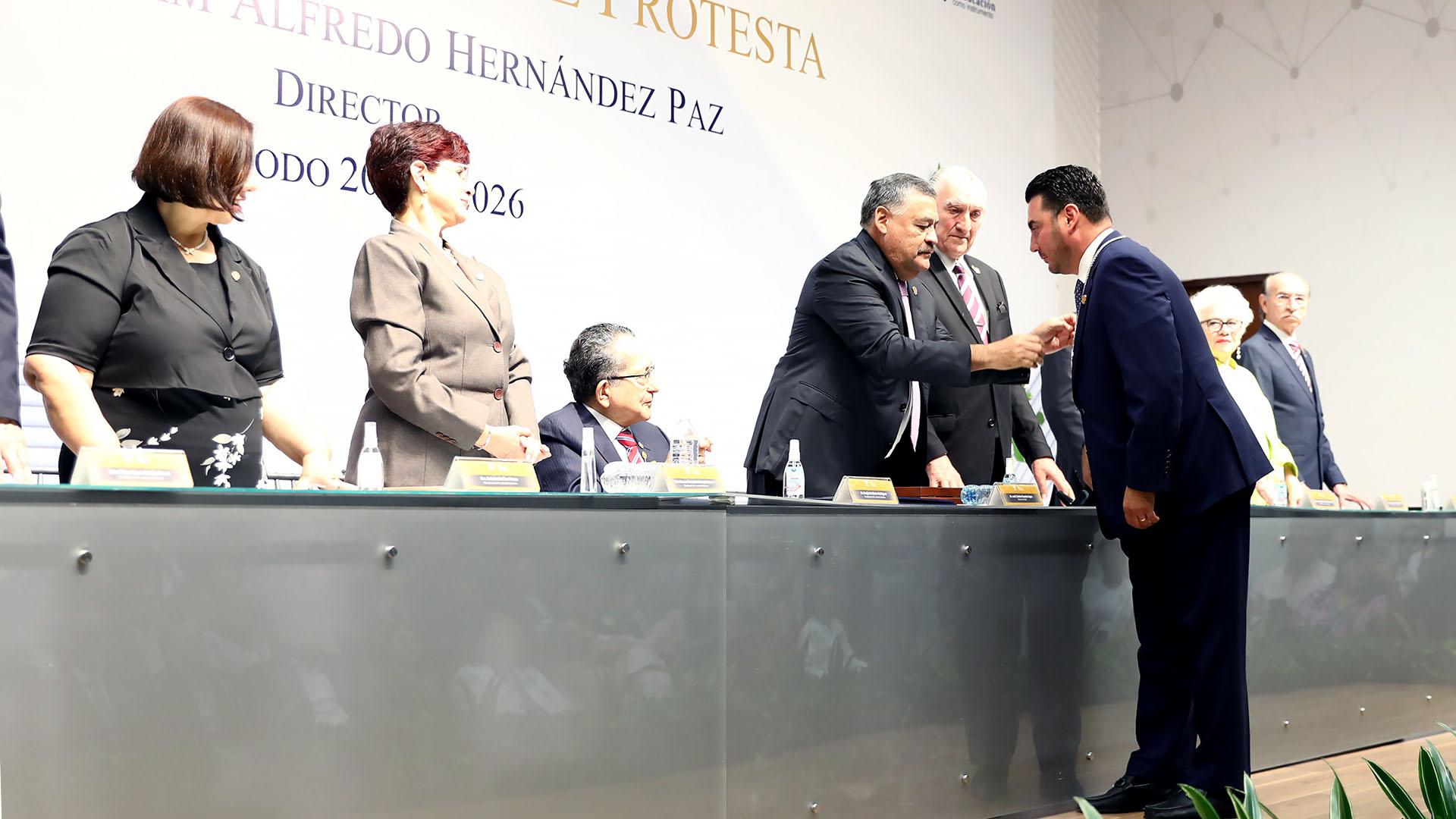 El titular de esta dependencia universitaria tomó protesta el 28 de abril ante la Honorable Junta de Gobierno teniendo como testigo al Rector de la UANL, Santos Guzmán López.