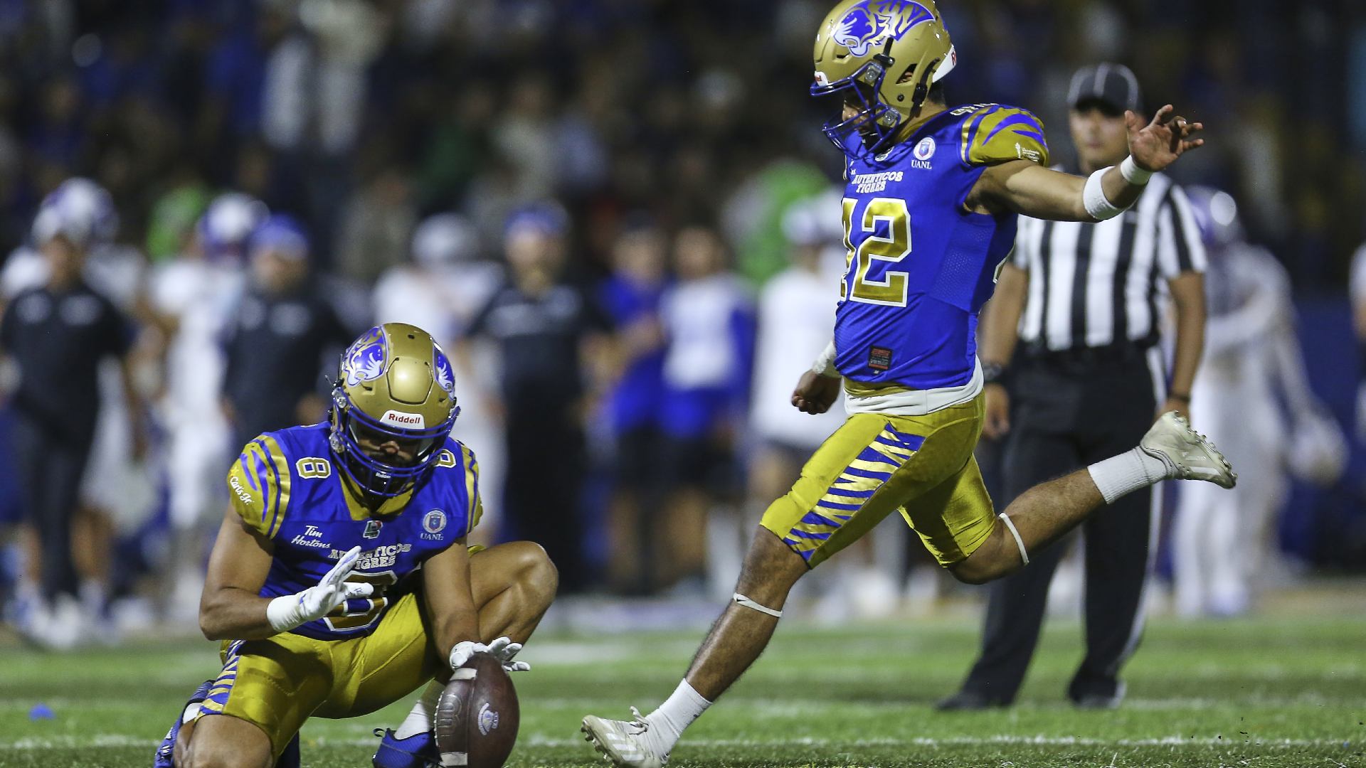Durante el primer cuarto, los Auténticos Tigres generaron buenas jugadas que los colocaron en zona de anotación, pero la defensiva de los Borregos logró detener a la ofensiva de los auriazules y con goles de campo de Reynaldo Blanco (42) el marcador favoreció momentáneamente a la UANL 6-0.