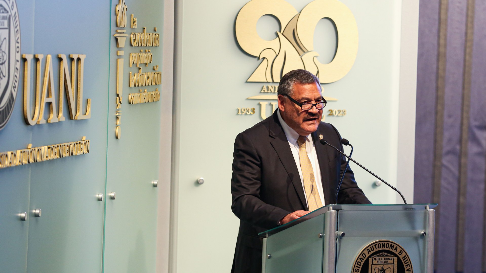Guzmán López dijo que esta ceremonia reconoce la labor invaluable de un grupo selecto de egresados que ha trascendido profesionalmente por sus aportaciones a la sociedad y que representan el motor que ha movido a la UANL a lo largo de sus nueve décadas de vida.
