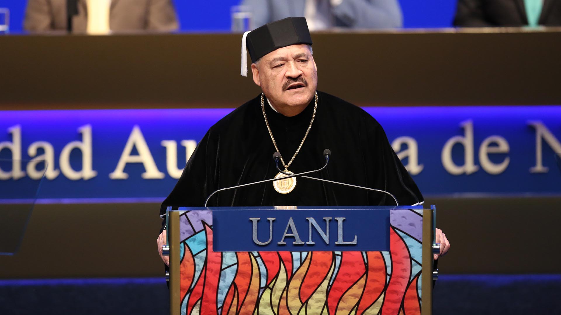En Sesión Solemne del Honorable Consejo Universitario el 26 de octubre en el Teatro Universitario de la Universidad Autónoma de Nuevo León, el funcionario universitario refrendó su compromiso de seguir trabajando bajo los objetivos del Plan de Desarrollo Institucional y acorde con la visión 2030.