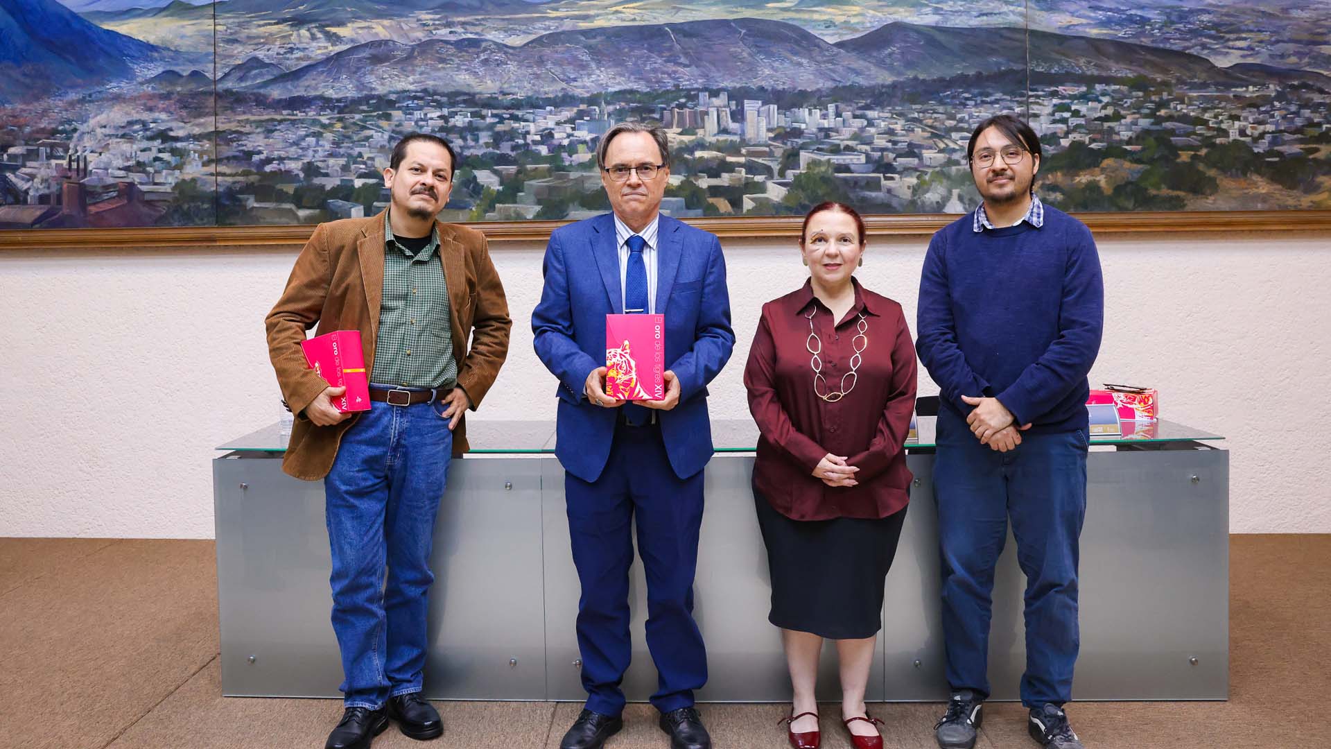 Reunidos en el lobby del recinto cultural, los asistentes apreciaron el cuidado editorial del equipo de trabajo integrado por la Directora de Desarrollo Cultural Universitario, Martha Ramos; Carlos Lejaím Gómez, en relaciones públicas y cuestiones legales; Nancy Cárdenas, Rodrigo Alvarado e Iván Mata.