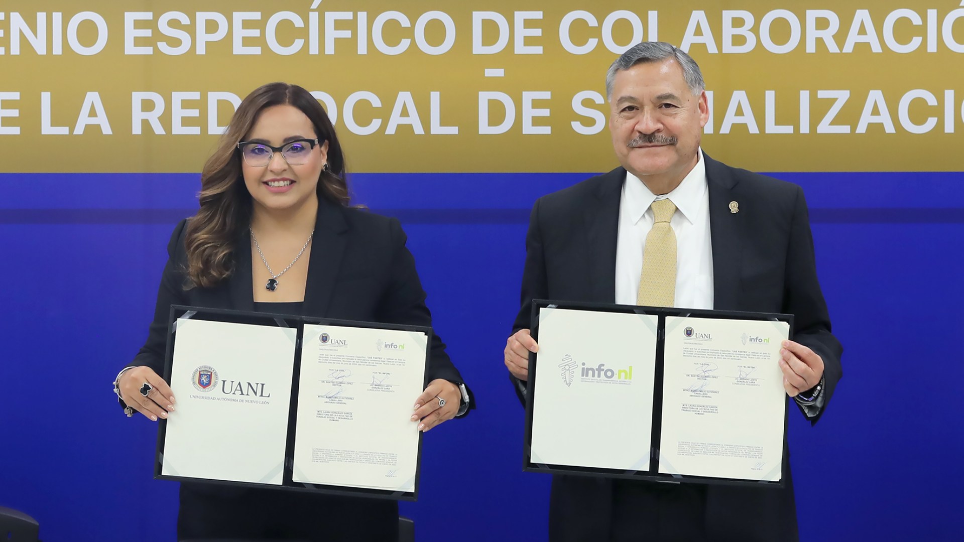 La Universidad Autónoma de Nuevo León (UANL) y el Instituto Estatal de Transparencia, Acceso a la Información y Protección de Datos Personales (INFO NL) llevaron a cabo la firma de un convenio de colaboración, el cual permitirá coordinar y desarrollar la implementación del Plan Nacional de Socialización del Derecho de Acceso a la Información (Plan DAI) en Nuevo León.